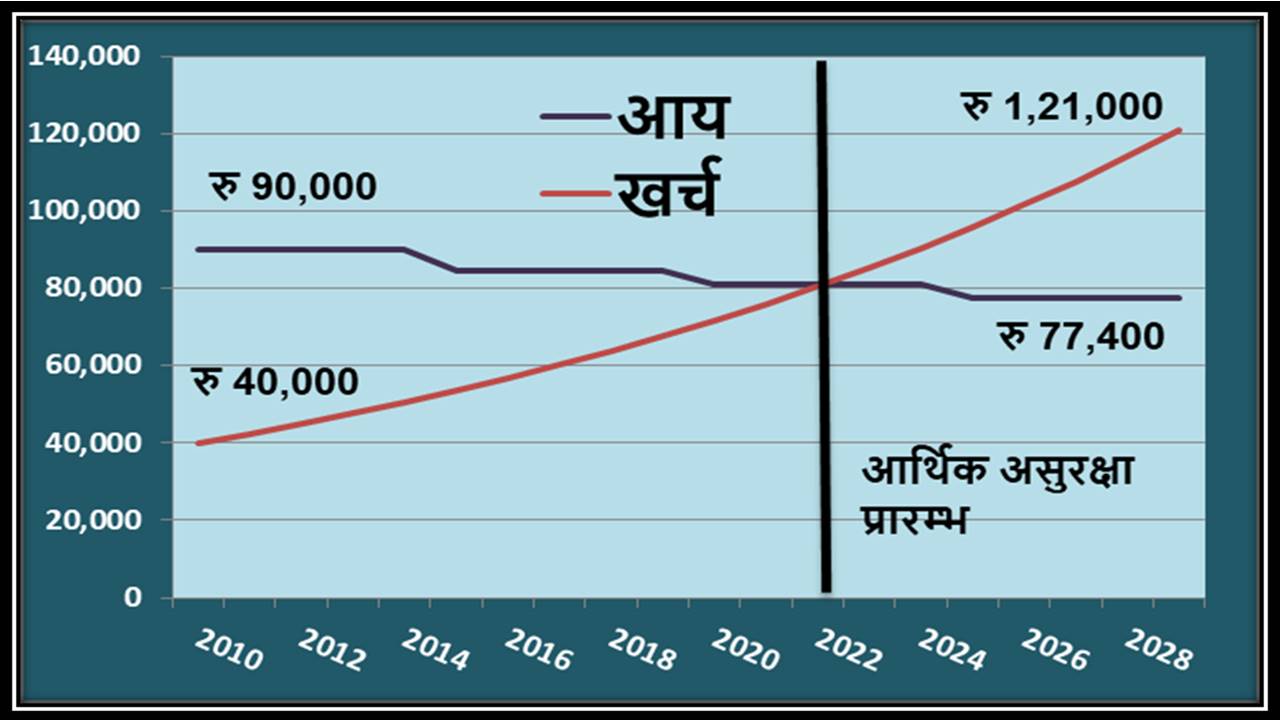 इस तरह प्रकाश जी, जो सेवा निवृति के शुरुआती वर्षों मे अपनी आर्थिक सुरक्षा के लिए एकदम आश्वस्त थे, अब असुरक्षित महसूस कर रहे हैं और बहुत परेशान हैं। क्योंकि उन्हें इस बात का बोध है कि अब रोज़मर्रा के खर्चों के अलावा स्वास्ठ पर भी खर्च बढ़ेगा और अगर कोई बड़ा खर्च आ गया तो उसे वहन करना बहुत मुश्किल हो जाएगा।